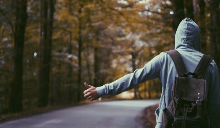 • A gray cat slinks past a wooden house. There’s something a little intimidating attempting to describe.